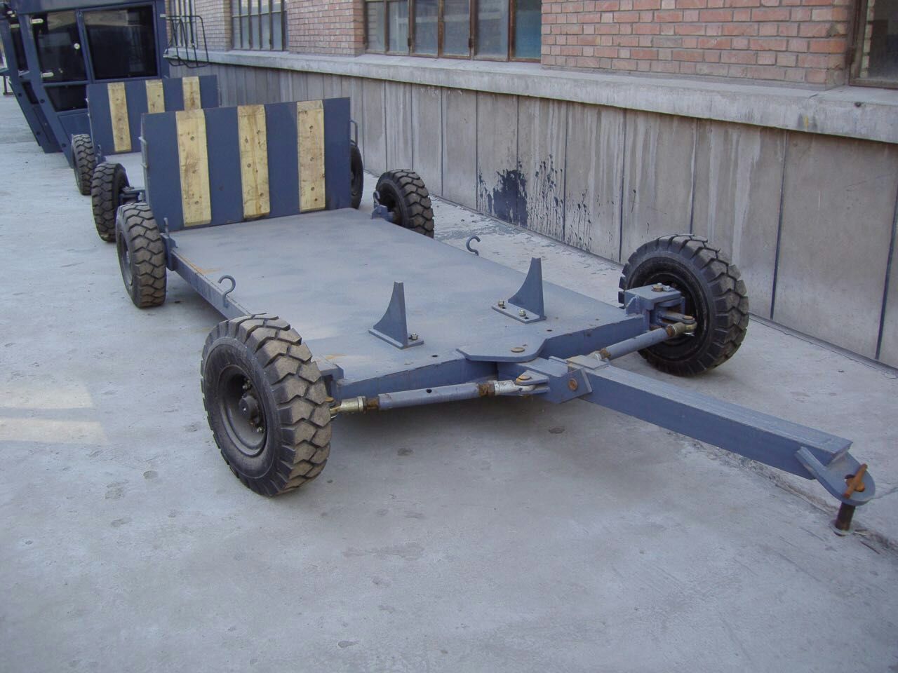该系列拖板,专为小型压路机设计,根据客户要求可以定制双桥以及三桥,载荷不同的小型拖板,前转向轮机构为钢性浮动,适合各种牵引连接。特别适合压路机转场作业,经久耐用,避免了压路机长距离转场对设备的损耗,以及油料成本的增加。